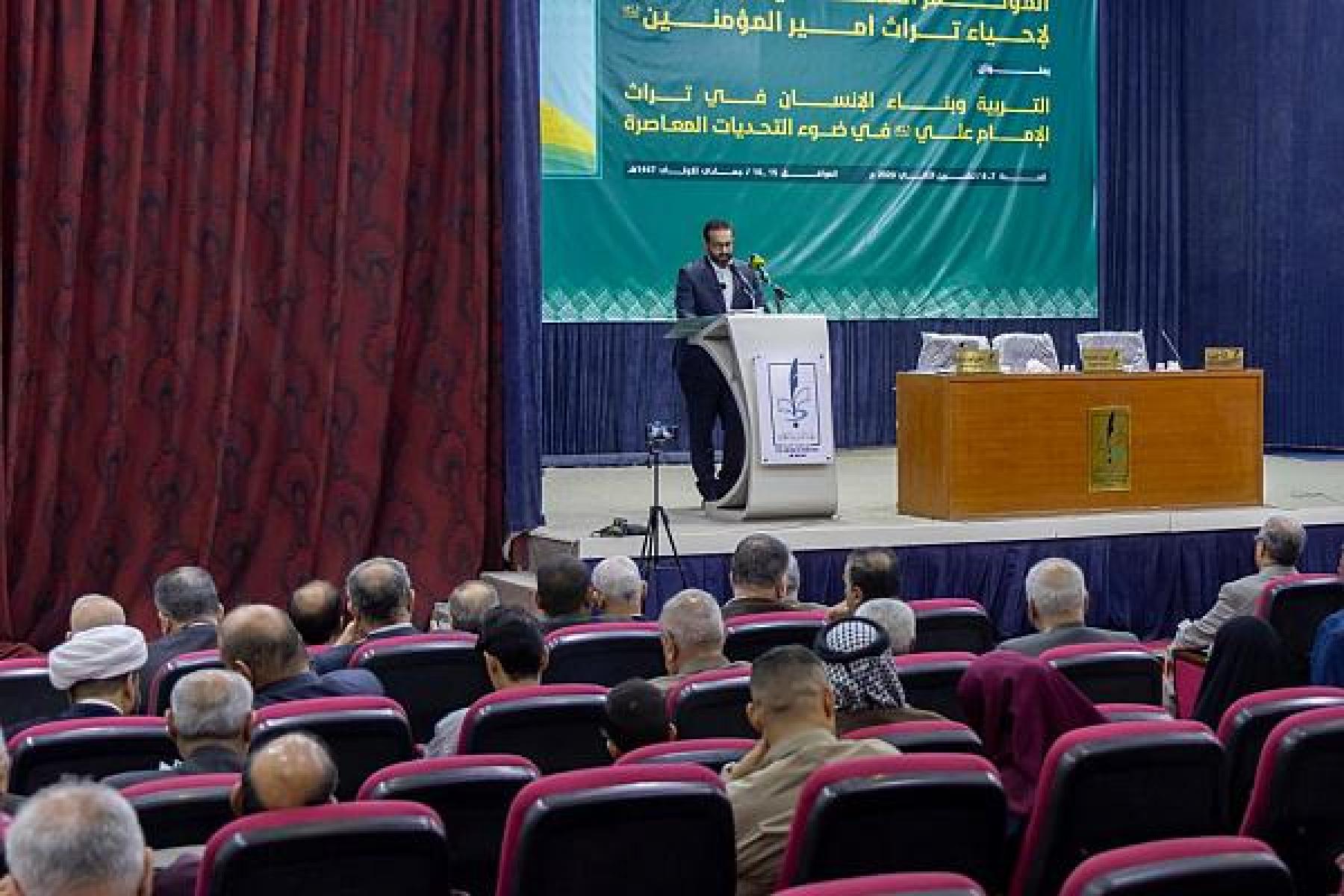 وتابع أنّ "الأمة واجهت على مر العصور تحديات كبرى، غير أنّ تحديات عصرنا تتخذ صورًا أكثر تعقيدًا وتشابكًا، تحديات معرفية، وأخلاقية وتربوية، وفكرية، وتكنولوجية، تستهدف الوعي وتعيد تشكيل الهوية وتفرض استهلاكًا فكريًّا غير منضبط، فتغدو فيها العقول ميدان الصراع الأول، ولذلك تصبح العودة إلى مدرسة الإمام علي (عليه السلام) ضرورة حضارية بوصفها طريقًا إلى بناء عقل حر لا يخضع للجهل ولا يستعبد بالباطل، وإلى تنشئة إنسان يدرك دوره في صياغة المستقبل، وإلى ترسيخ قيم المسؤولية والمواطنة والإصلاح، وإلى الدفاع عن الهوية دون انغلاق أو انكفاء، وإنّ تراث الإمام علي (عليه السلام) في التربية مشروع حياة كامل، تتأسس فيه المبادئ، وتهذب به النفوس، وتتربى عليه الأجيال في البيت والمدرسة والمجتمع والدولة".