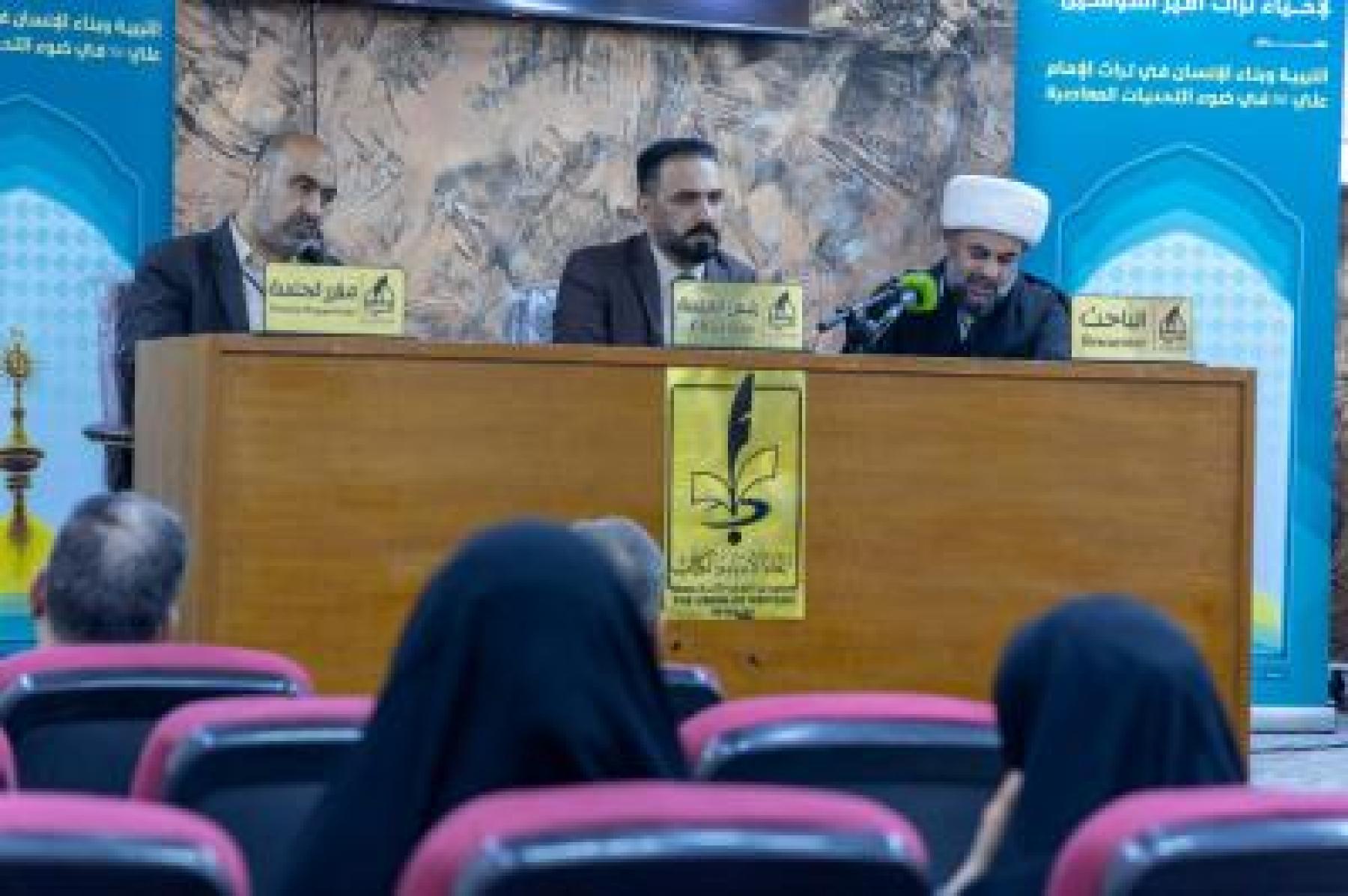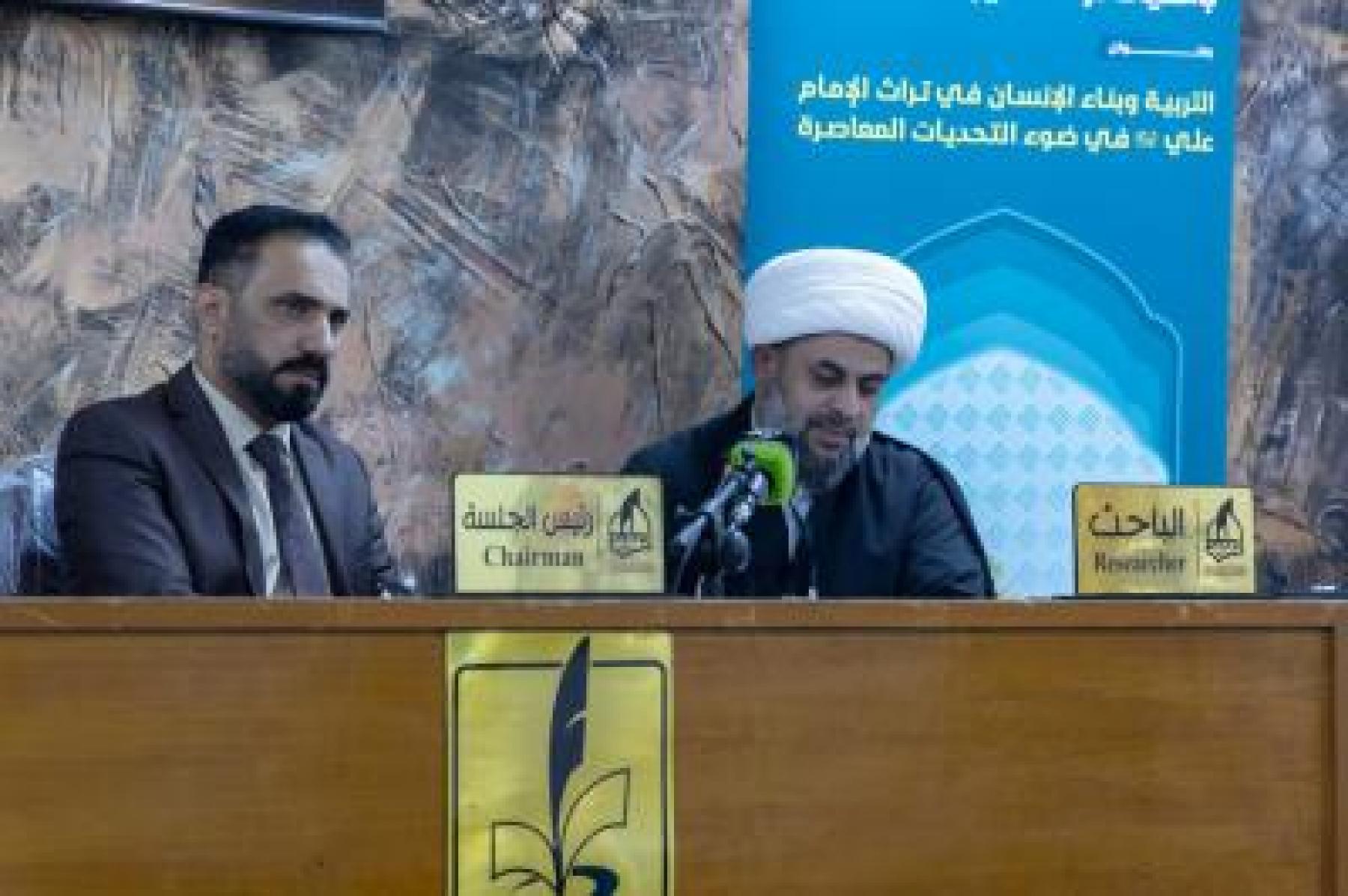 وتضمّنت الجلسة التي ترأسها الأستاذ الدكتور حسنين جابر الحلو، مناقشة ثلاثة بحوث، حمل الأول منها عنوان (التوازن التربوي بين العقل والقلب في تراث الإمام علي -عليه السلام-) للشيخ عبد الغني إبراهيم، والثاني (قراءة للمنظور القيمي والتربوي في مدرسة أمير المؤمنين -عليه السلام-) للباحث أحمد السهلاني، والثالث (التربية الإنسانية بين أساليب الحداثة وأصالة الإسلام دراسة في فكر الإمام علي -عليه السلام-) للمساعد الدكتورة دنيا سلمان.