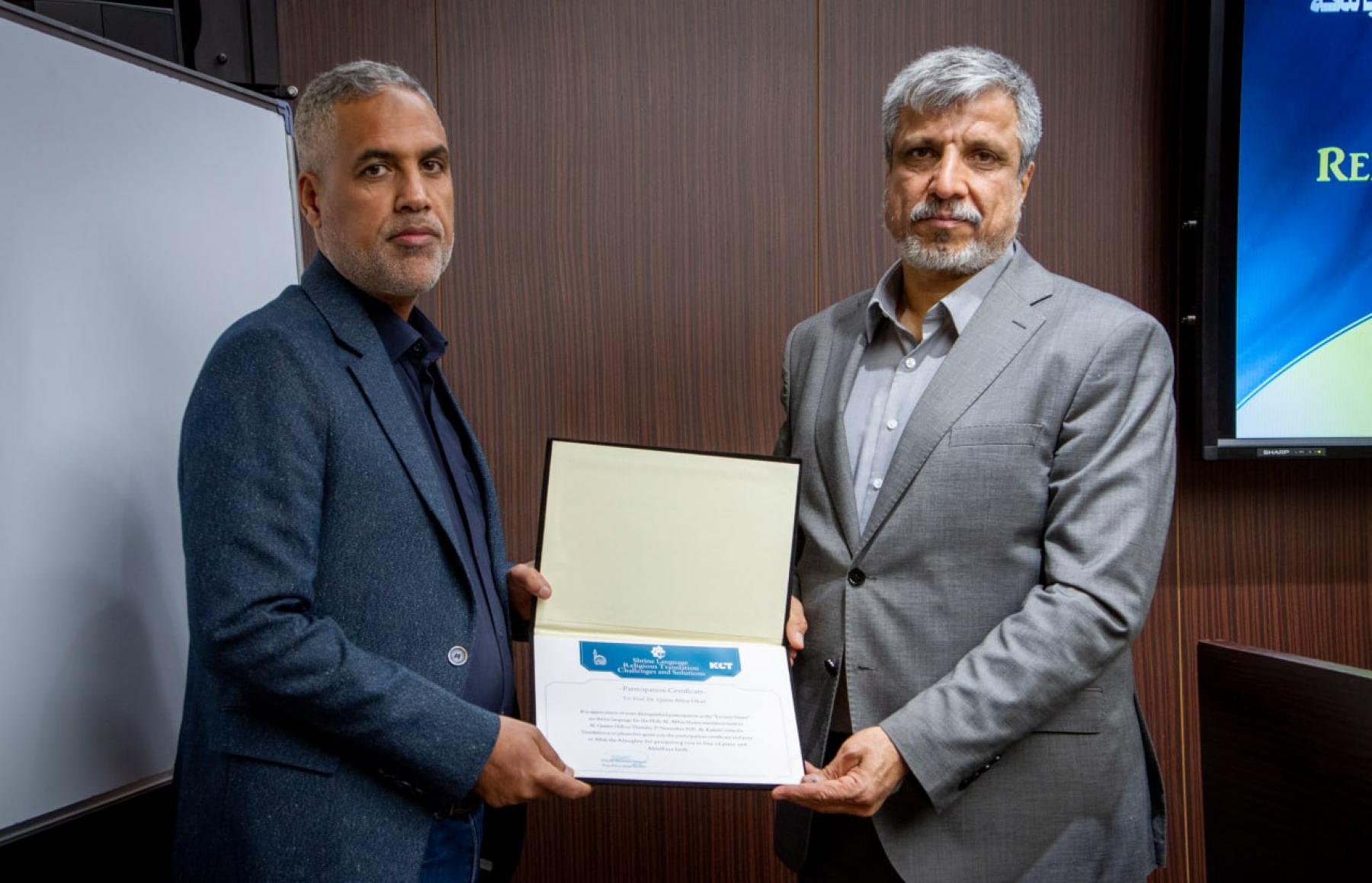 وفي ختام هذه الفعَّاليَّة قدَّم مركزُ الكفيل للترجمة شهاداتِ