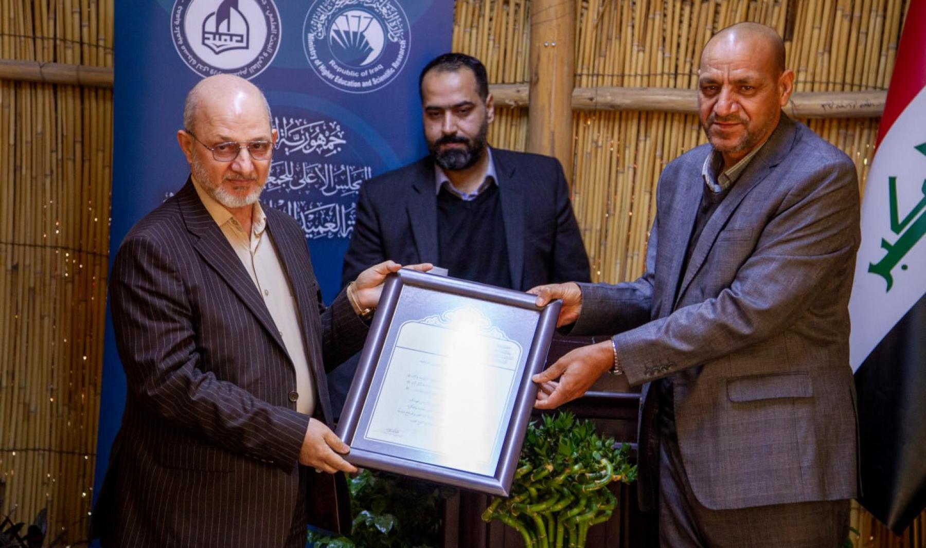 وفي ختام الحفل، قدَّم رئيس الجمعيَّة الأستاذ الدكتور سرحان جفات سلمان درع جمعيَّة العميد إلى الأستاذ الدكتور "رياض طارق العميدي"، تقديرًا لجهوده المخلصة وما قدَّمه من عملٍ نوعيٍّ وعطاءٍ متميِّز، وسط أجواء اتَّسمت بالتقدير والامتنان، وعكست مكانته في قلوب الجميع.