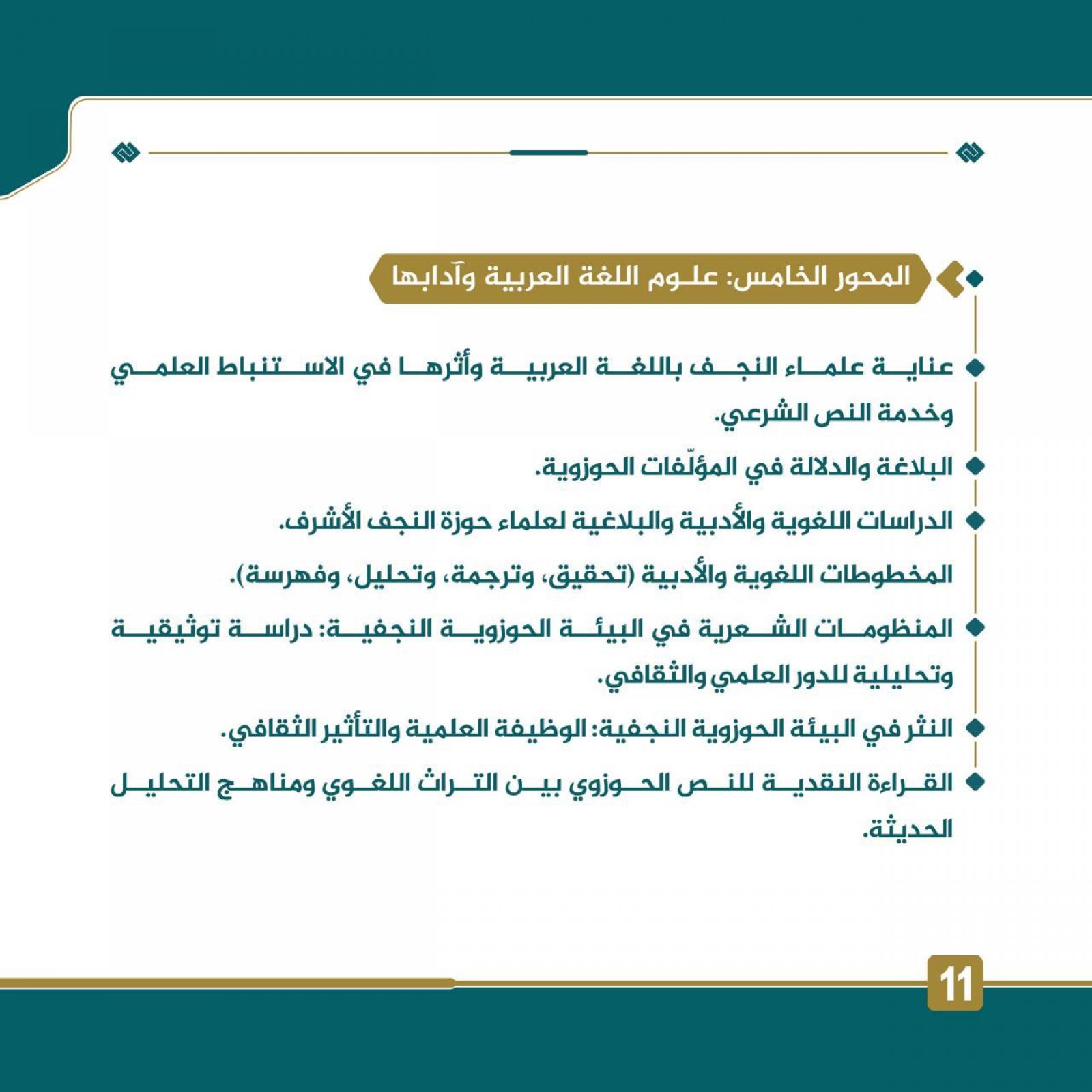- عناية علماء النجف باللغة العربيَّة وأثرها في الاستنباط العلمي وخدمة النصِّ الشرعي.
