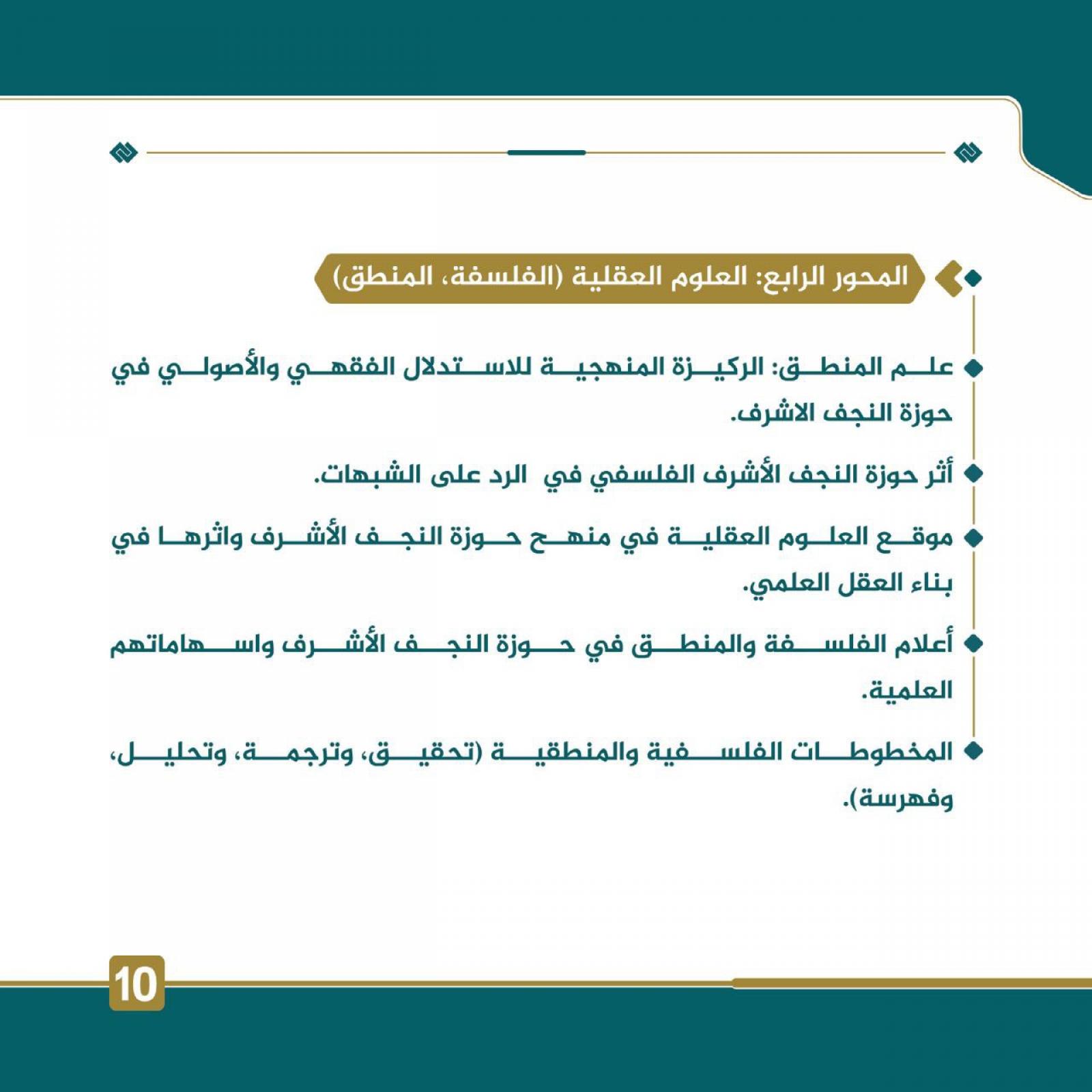 - أعلام الفلسفة والمنطق في حوزة النَّجف الأشرف وإسهاماتهم العلميَّة.