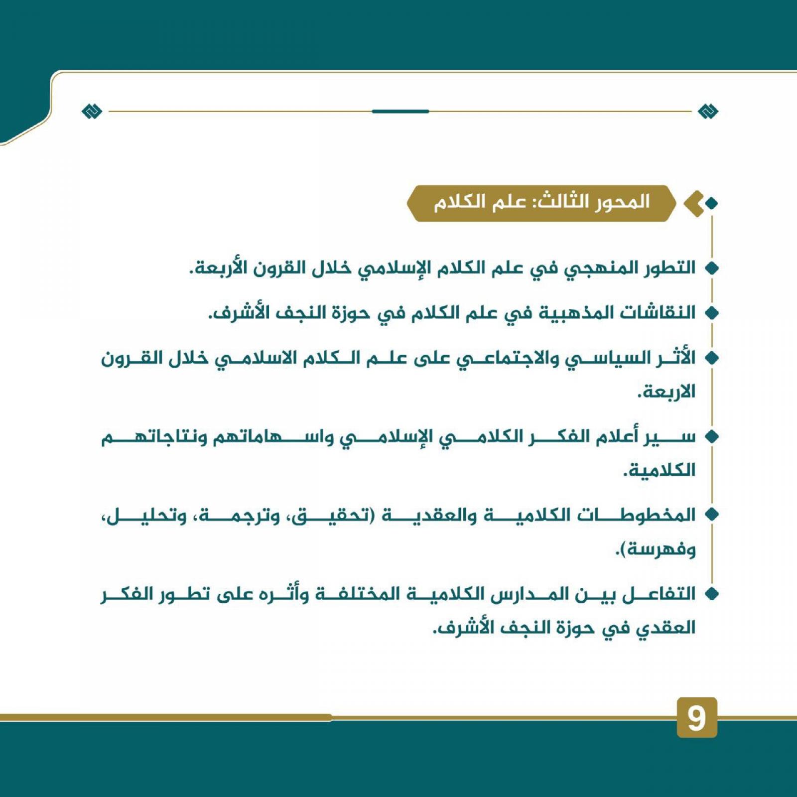 - التفاعل بين المدارس الكلاميَّة المختلفة وأثره على تطور الفكر العقدي في حوزة النجف الأشرف.