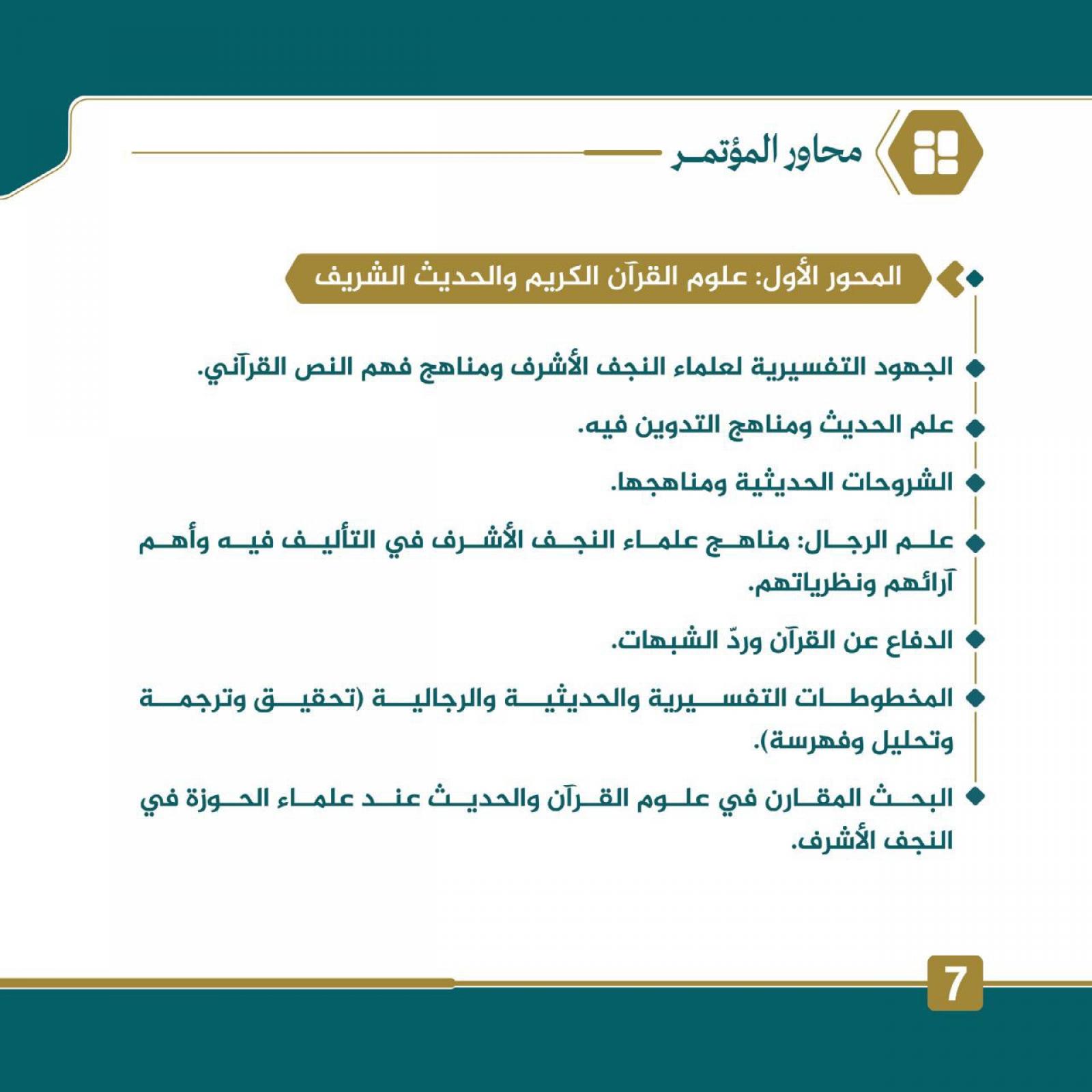 المحور الأوَّل: علوم القرآن الكريم والحديث الشريف.