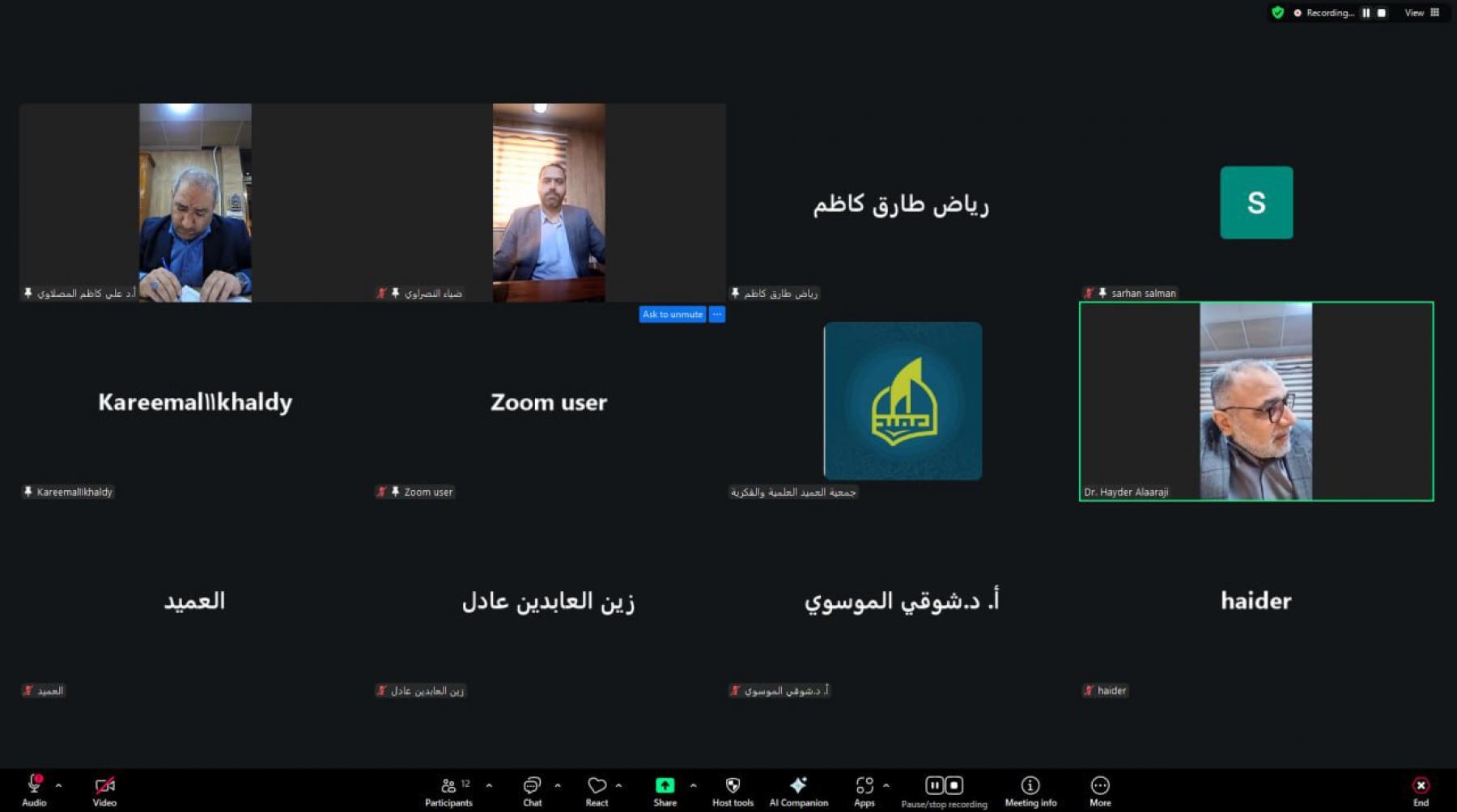 عقدت جمعيَّة العميد العلميَّة والفكريَّة، صباح يوم الجمعة الموافق 6/3/2026م، اجتماعها التَّداولي إلكترونيًّا عبر البرنامج الافتراضي (Zoom)، بمشاركة أعضاء الهيأة الإداريَّة برئاسة السيِّد رئيس الجمعيَّة الأستاذ الدكتور سرحان جفات سلمان.